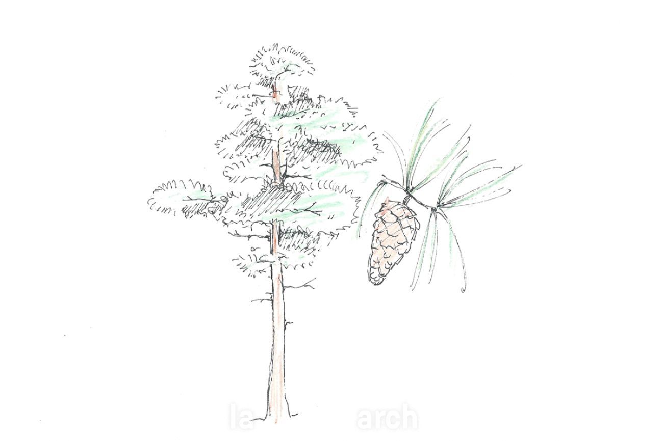 Domáci ihličnatý strom. V mladosti kompaktný habitus, neskôr vytvára plochú rozložitú korunu.